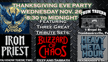 We will be performing these tribute sets and doing all songs by each artist in a row. The last set is an Old School Headbangets Ball with "everything else" and it all should be a lot of fun!!